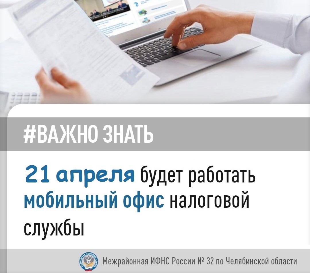 Межрайонная ИФНС России № 32 по Челябинской области 21 апреля 2026 года с 10:00 до 12:00 часов организует работу мобильного офиса по адресу: г. Челябинск, ул. Братьев Кашириных, д. 129 (в здании Челябинского государственного университета, 1 этаж).