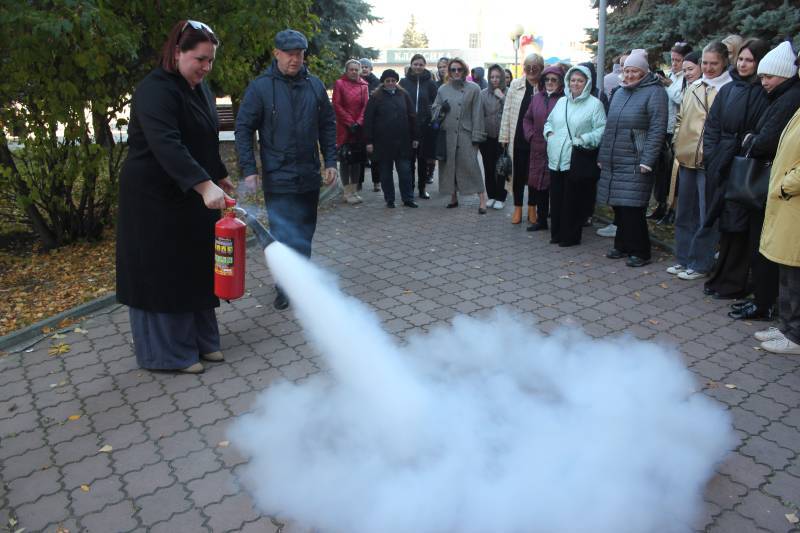 - проведена практическая тренировка по эвакуации сотрудников и посетителей из здания Администрации района при обнаружении пожара, по использованию первичных средств пожаротушения.