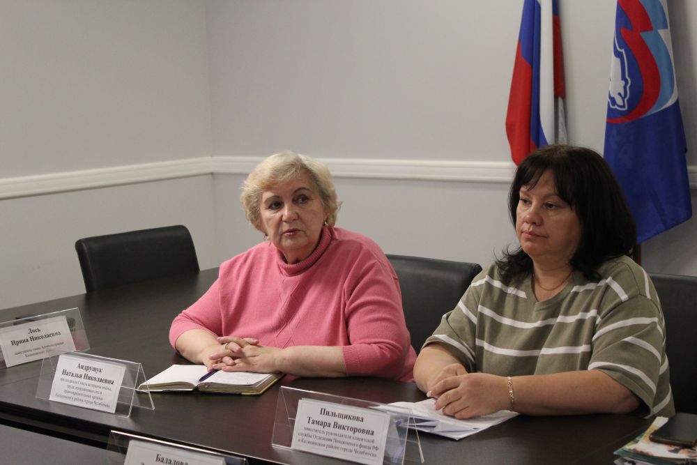 В мероприятии приняли участие: Ирина Лось – заместитель главы Администрации Калининского района, Наталья Андрущук – председатель Калининского районного Совета ветеранов, Надежда Матвеева – руководитель депутатского центра Калининского местного отделения Партии «Единая Россия», Зарифа Бадалова – директор Комплексного центра социального обслуживания населения по Калининскому району, представители Калининского управления социальной защиты населения Администрации города Челябинска, Клиентской службы Социального фонда России в Калининском районе, Городской клинической больницы № 5 и коллегии адвокатов Калининского района.