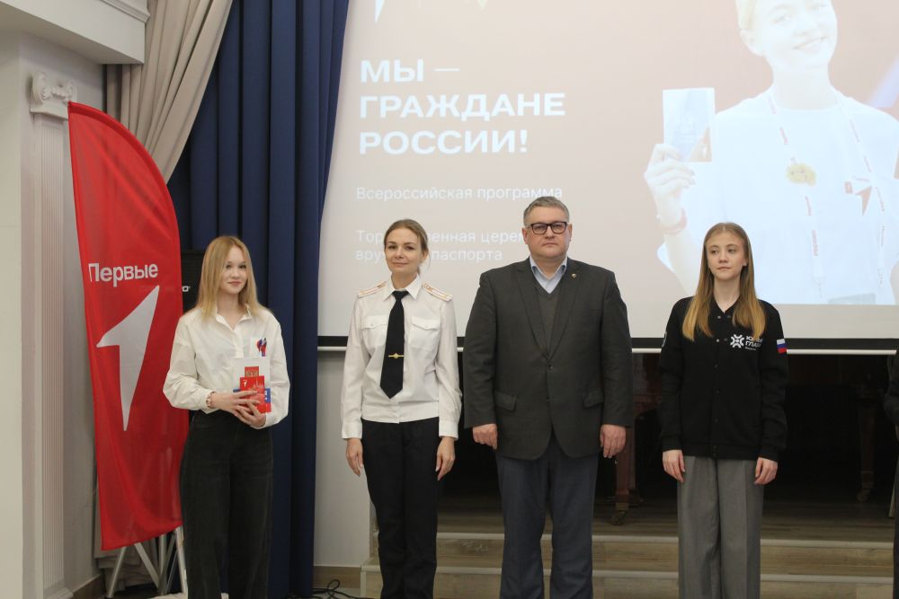 Сегодня состоялась торжественная церемония вручения паспортов юным участникам «Движения Первых» в рамках Всероссийской программы «Мы – граждане России!». Это событие стало ярким вступлением молодых людей в новую жизненную главу. Мероприятие приурочено к 12-й годовщине возвращения Крыма и Севастополя в состав России, что придало церемонии особую значимость.