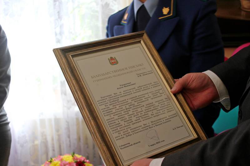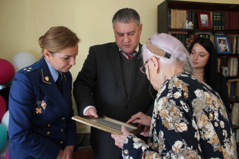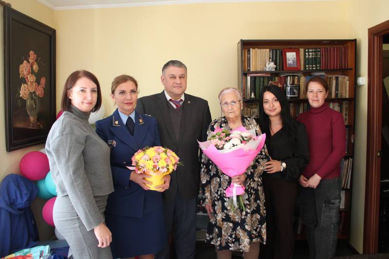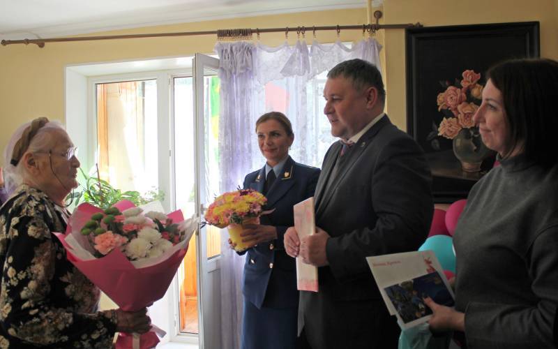 К поздравлениям присоединились прокурор Калининского района Татьяна Полежаева, начальник Калининского управления социальной защиты населения Администрации Челябинска Светлана Селезнёва и директор Комплексного центра социального обслуживания населения по Калининскому району Зарифа Бадалова. Особую торжественность моменту придало персональное поздравление от главы города Алексея Лошкина, переданное лично имениннице.